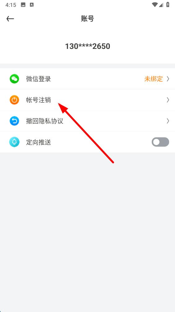 3、在賬號設(shè)置頁面里,點擊帳號注銷選項,進入注銷賬號提示界面。