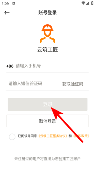 4、在頁面輸入手機號和驗證碼后,點擊登錄,未注冊將直接創(chuàng)建賬戶。