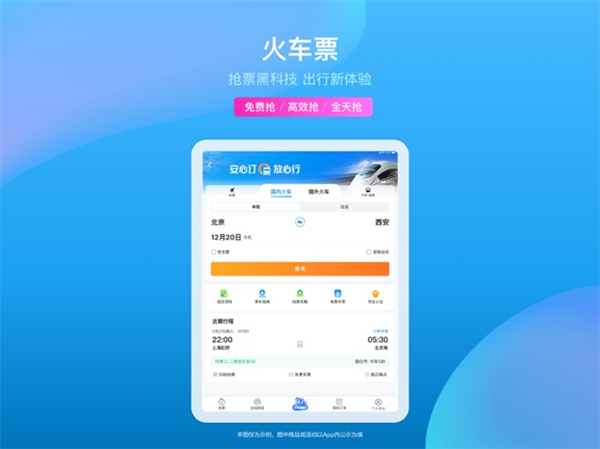 - 火車票:支持國內(nèi)、國際火車票預(yù)訂。集搶票、學(xué)生票預(yù)訂、12306直連于一體,甚至還可以享受足不出戶送票上門的貼心服務(wù)。