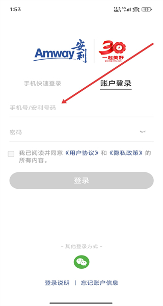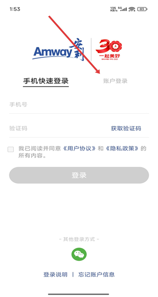 2、在進(jìn)入到登錄頁面中,可以點(diǎn)擊賬戶登錄按鈕,進(jìn)行切換登錄方式。