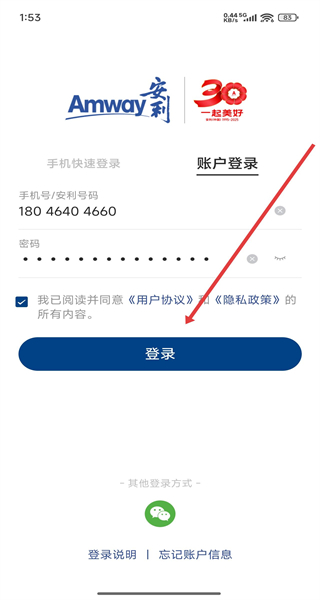 4、在填寫好手機(jī)號(hào)和登錄密碼后,點(diǎn)擊登錄按鈕,即可完成登錄。