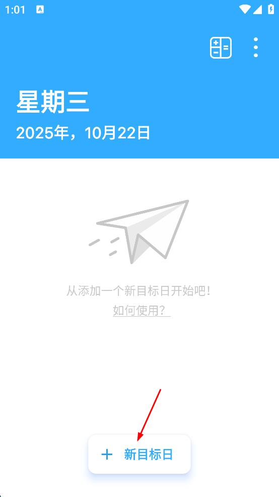 1、打開(kāi)日程軟件,點(diǎn)擊新目標(biāo)日,進(jìn)入添加新目標(biāo)日界面。