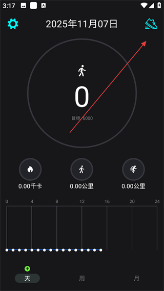 1、打開運(yùn)動跑步APP,點(diǎn)擊右上角鞋子圖標(biāo)。