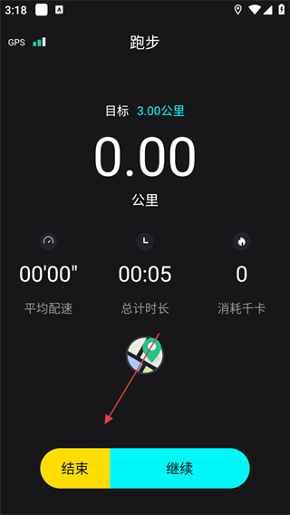 5、跑步結(jié)束后,點(diǎn)擊結(jié)束,即可完成跑步操作。
