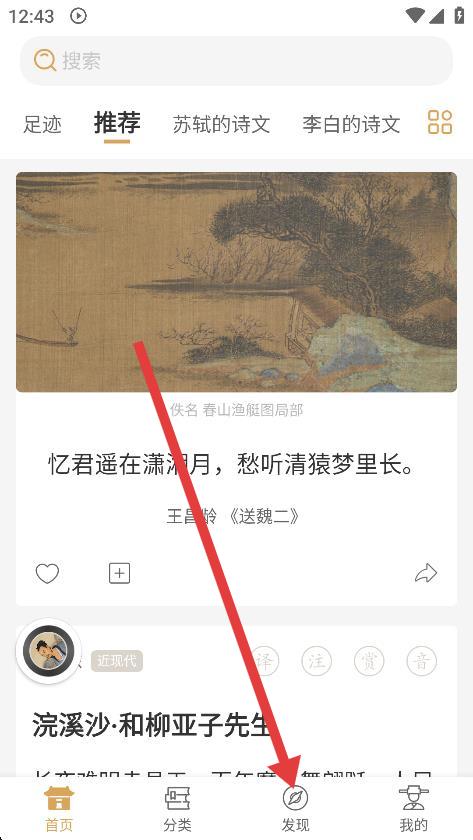 1、打開古文島app,點擊底部導(dǎo)航欄中的發(fā)現(xiàn)。