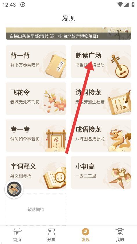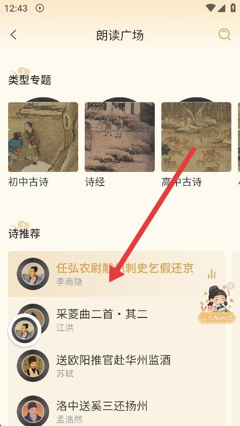 3、在朗讀廣場中,選擇要播放的詩文并點擊。