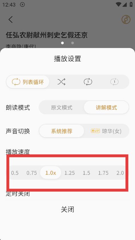 5、找到播放速度欄,點擊需要的播放速度,即可更改播放速度。