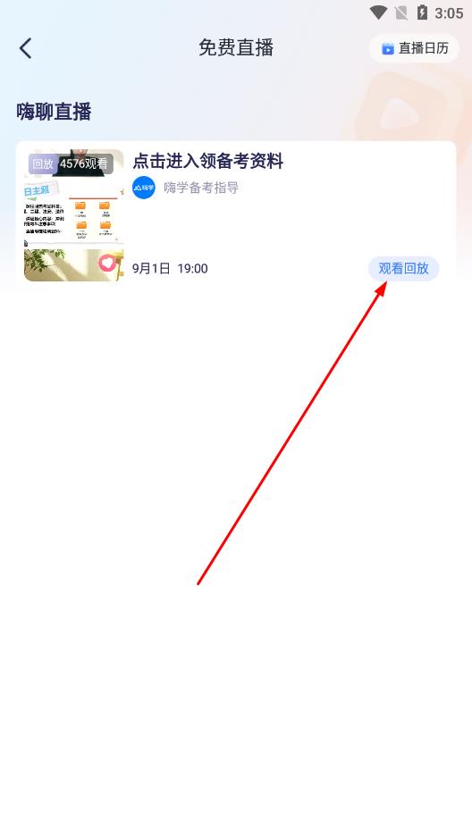 2、進入免費直播頁面后,展示已結(jié)束直播的課程列表,點擊觀看回放。
