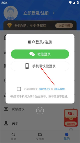 3、在用戶登錄/注冊(cè)窗口點(diǎn)擊手機(jī)號(hào)快捷登錄選項(xiàng),進(jìn)入手機(jī)號(hào)登錄頁面。