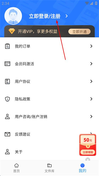 2、在個(gè)人中心頁面點(diǎn)擊立即登錄/注冊(cè)選項(xiàng),彈出用戶登錄/注冊(cè)窗口。