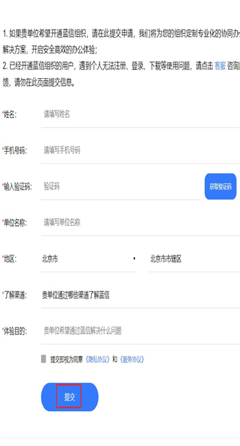 2、在申請的界面里根據(jù)方框之中的需求進行相對應的輸入,同意相關(guān)的協(xié)議服務,點擊下面的【提交】完成賬號注冊的申請,為自己申請一個賬號;