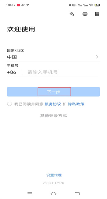 4、在一進入就會有一個登錄的界面,輸入自己申請之時的【手機號】,點擊下方的【下一步】直接就可以進入自己的軟件賬號里面。