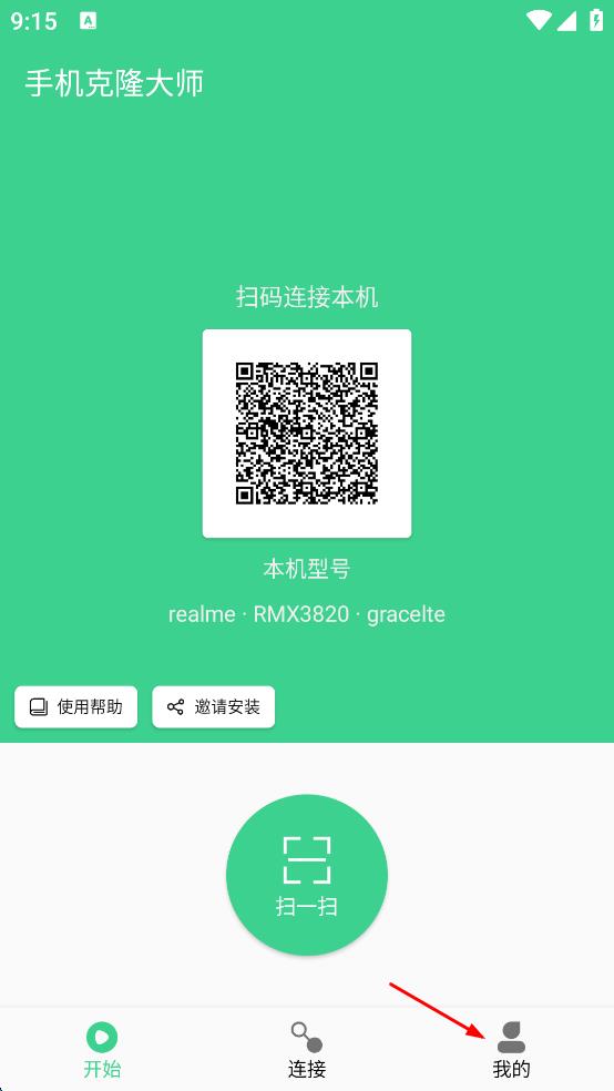 在手機克隆大師首頁,描另一部手機手機克隆大師上的二維碼連接設(shè)備;