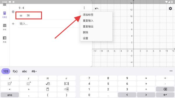 3、輸入后,點(diǎn)擊右側(cè)三個(gè)圖標(biāo)的按鈕同時(shí)彈出計(jì)算結(jié)果和菜單欄,再次點(diǎn)擊添加標(biāo)簽的按鈕。