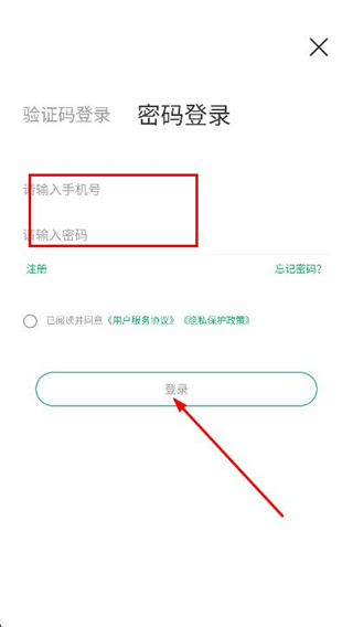 4、填寫手機號和密碼,點擊登錄即可完成賬號登錄。