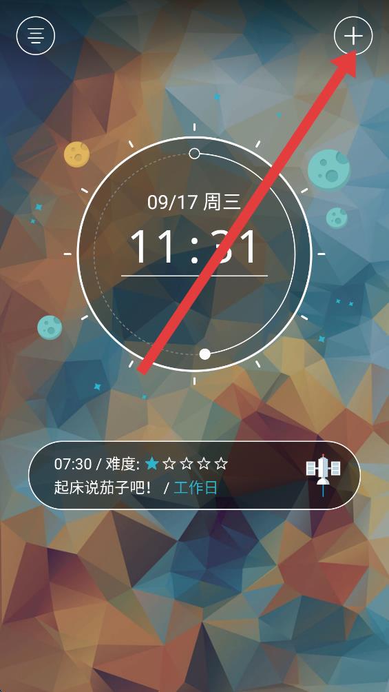 1、打開火箭鬧鐘app,點(diǎn)擊右上角的+號(hào)按鈕。