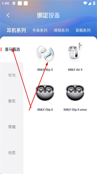2、在綁定設(shè)備頁面選擇設(shè)備系列和具體設(shè)備型號。