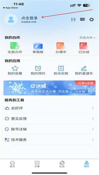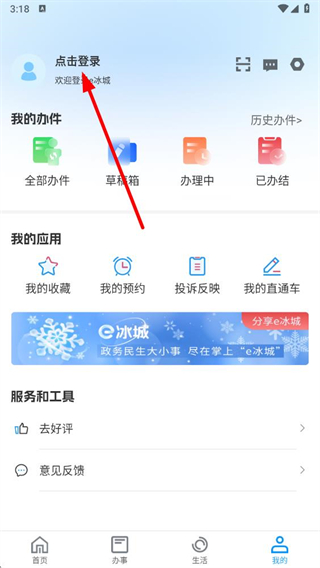 1、打開e冰城APP,進入時點擊底部我的圖標。