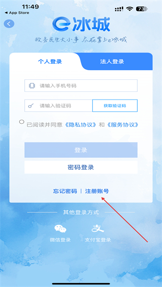 3、在登錄界面的個人用戶標簽下,先輸入手機號,再點擊獲取驗證碼,填寫收到的驗證碼。