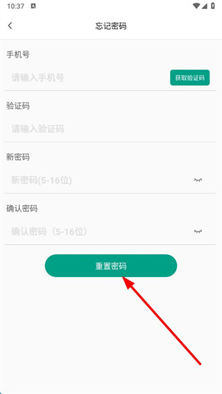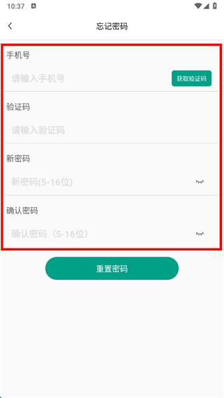 2、在忘記密碼頁面,輸入手機(jī)號(hào)、驗(yàn)證碼,設(shè)置新密碼并確認(rèn)密碼。