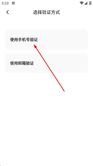 2、在選擇驗證方式頁面,點擊使用手機號驗證。