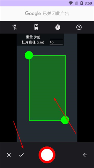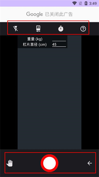 2、在操作頁面中,先設置重量、杠桿直徑等參數(shù),點擊底部的紅色錄制開始操作。