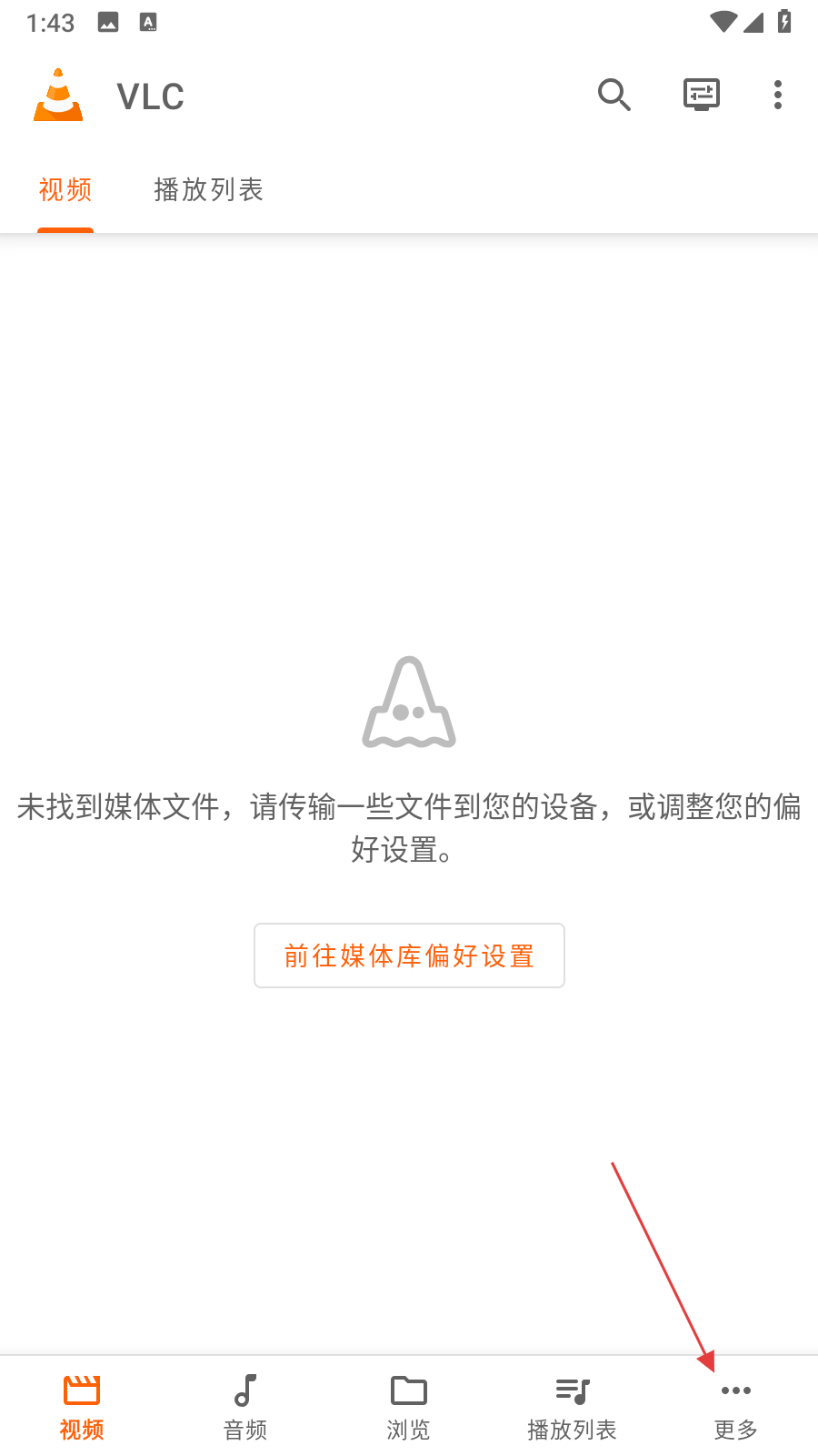 1、打開VLC播放器,點(diǎn)擊底部導(dǎo)航欄的更多選項(xiàng)。