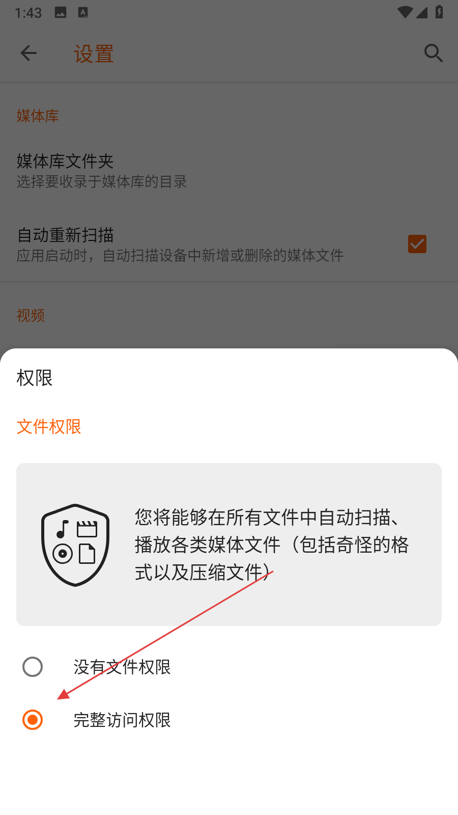 4、在彈出的權(quán)限設(shè)置彈窗里,選擇沒有文件權(quán)限或完整訪問權(quán)限。