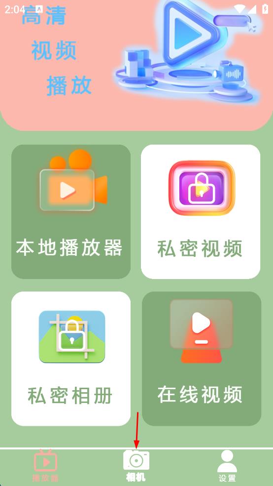 2、在軟件主界面,點(diǎn)擊底部“相機(jī)”選項(xiàng),進(jìn)入相機(jī)功能頁面。