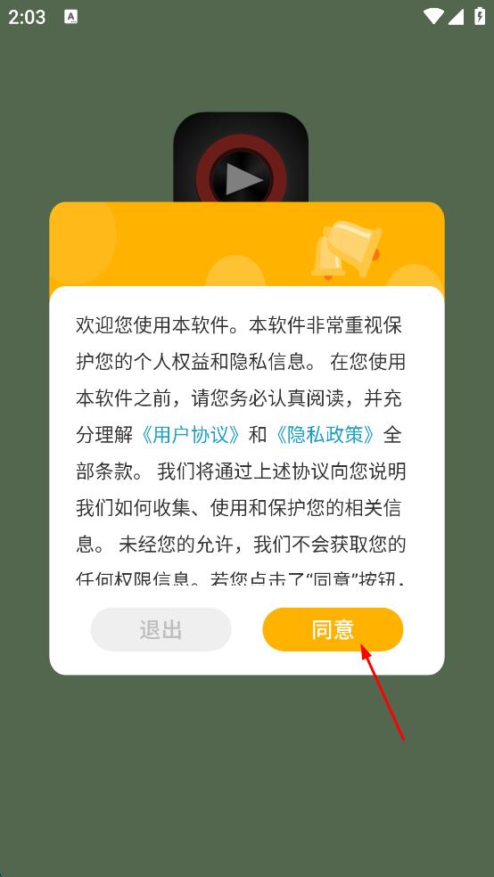 1、打開視頻類軟件,彈出用戶協(xié)議和隱私政策提示,仔細(xì)閱讀后點(diǎn)擊“同意”,進(jìn)入軟件主界面。