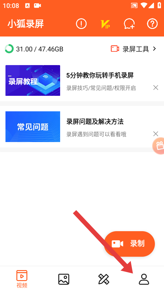 1、在小狐錄屏主界面,點(diǎn)擊底部導(dǎo)航欄我的選項(xiàng),進(jìn)入個人頁面。