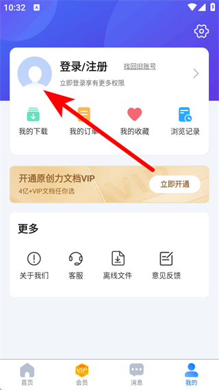 1、打開原創(chuàng)力文檔APP,點擊右下角我的,進(jìn)入個人頁面。