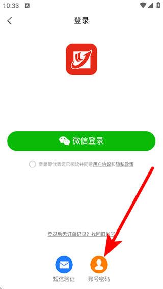 3、在登錄的頁面,我們需要點擊賬號密碼登錄的這個選項。
