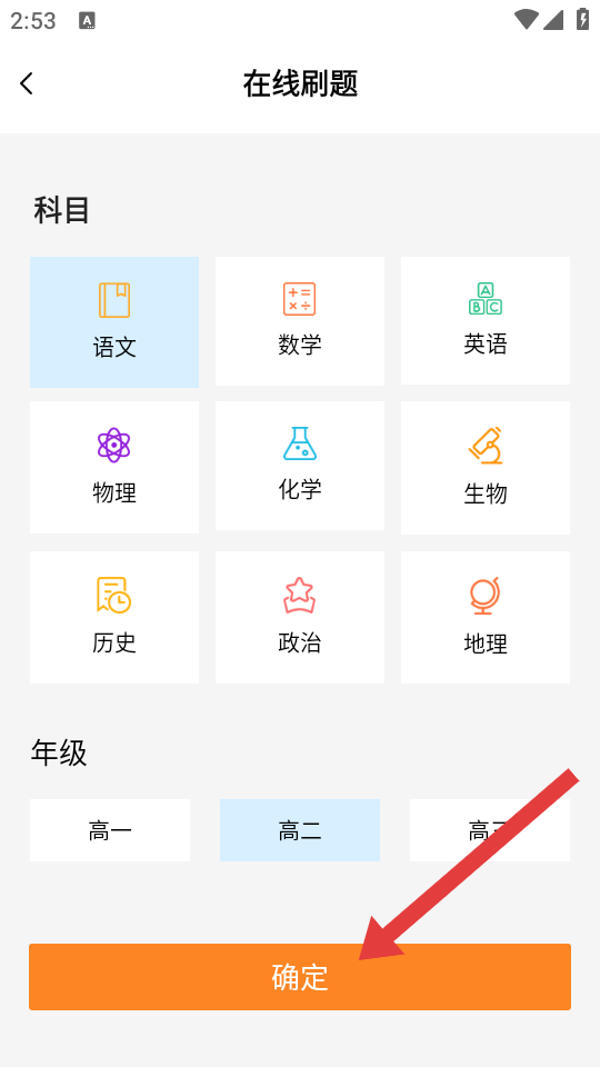 3、選擇好目標(biāo)科目和年級(jí)后,點(diǎn)擊確定進(jìn)入具體的刷題界面。