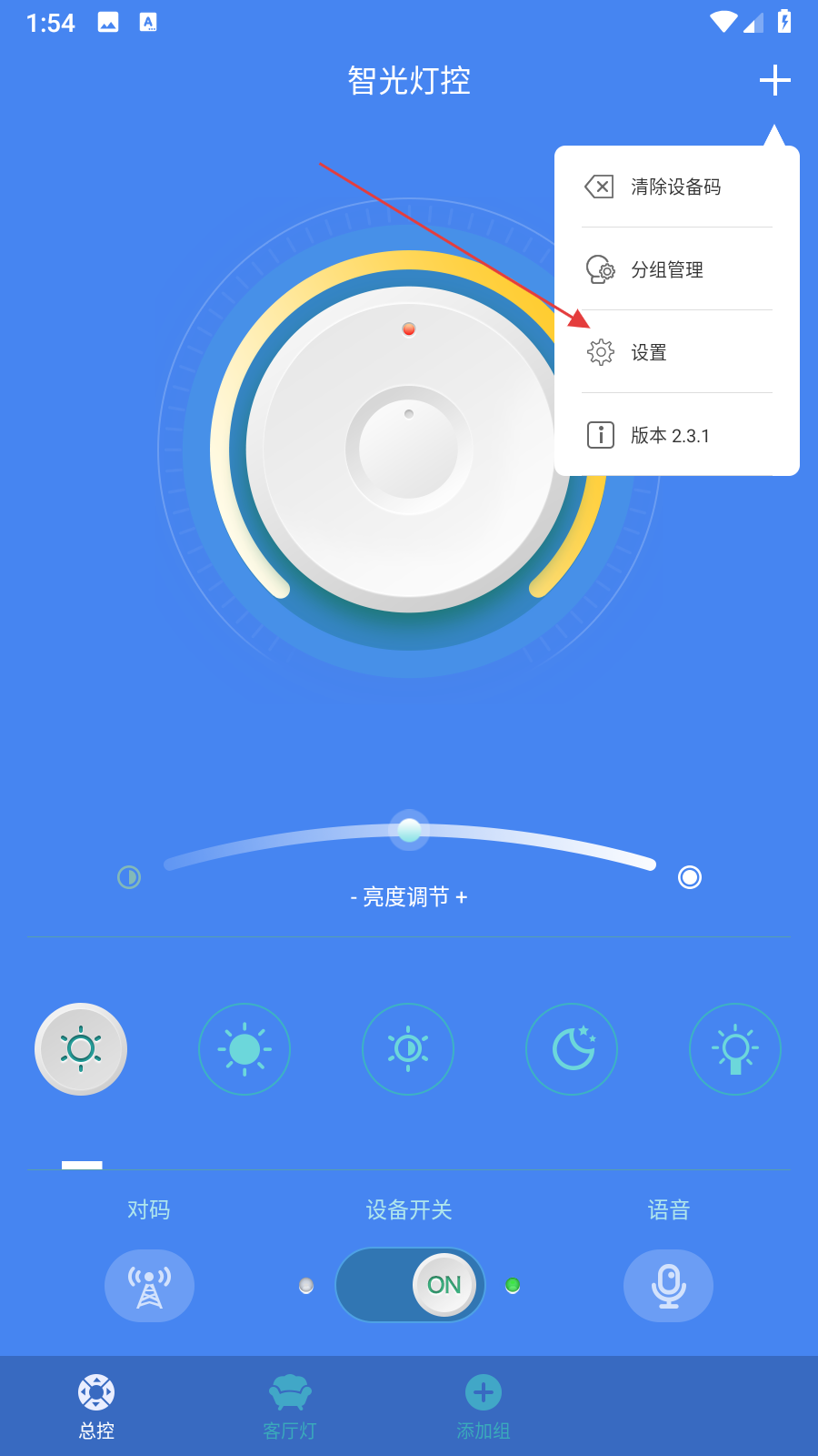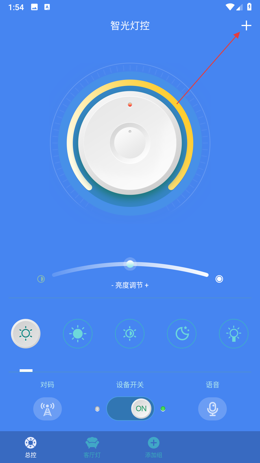 1、打開智光燈控APP,點擊界面右上角的+號。
