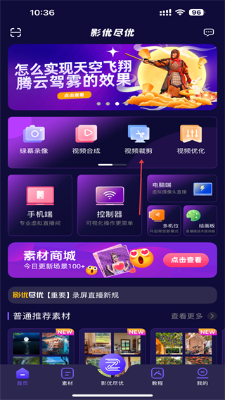 1、打開影優(yōu)盡優(yōu)APP,在首頁點(diǎn)擊視頻裁剪的按鈕。