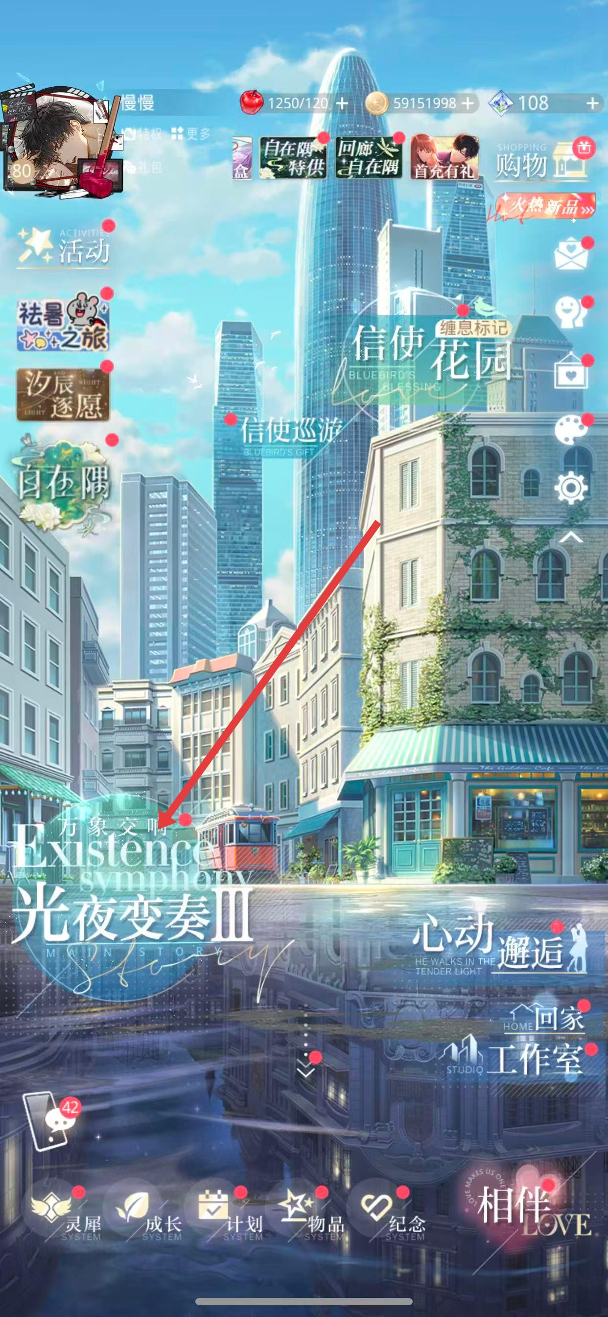 1、進(jìn)入游戲主界面,點(diǎn)擊光夜變奏Ⅲ區(qū)域,進(jìn)入章節(jié)劇情選擇頁面。