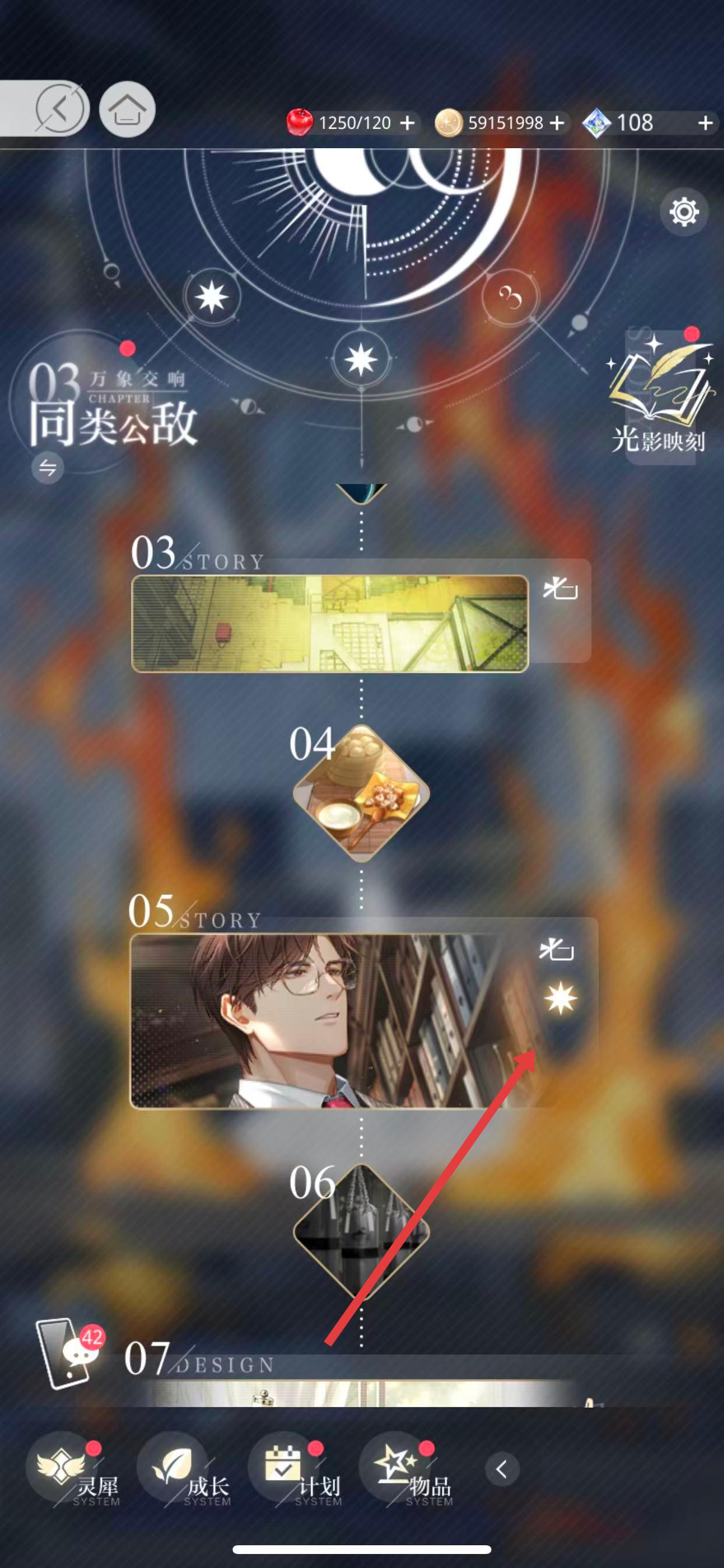 2、在章節(jié)劇情選擇界面,找到帶有太陽或月亮標(biāo)識(shí)的關(guān)卡,點(diǎn)擊想要重置選擇的關(guān)卡進(jìn)入。