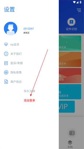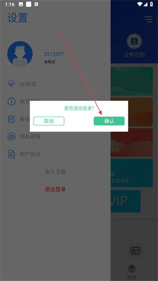 2、在展開的側(cè)邊功能欄中,點(diǎn)擊退出登錄選項(xiàng),彈出確認(rèn)窗口。