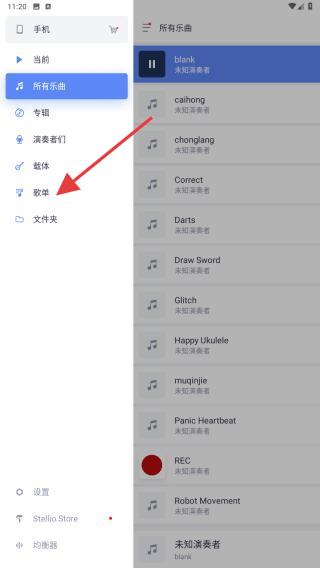 2、在左側(cè)彈出菜單欄,找到并點擊歌單的按鈕。