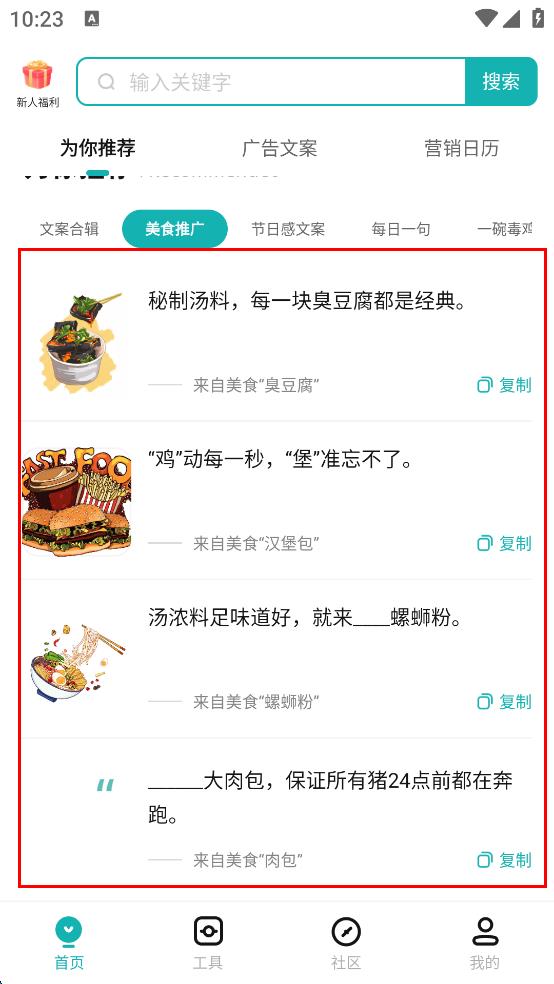 1、這里提供的文案類型豐富多樣,各種文案都可以輕松的找到。