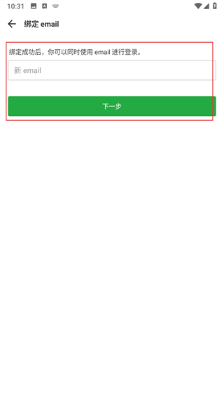 3、在綁定email界面的輸入框中填寫要綁定的郵箱地址,填寫后點擊下一步。