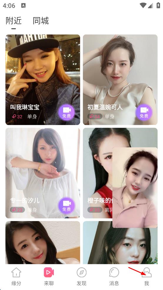 1、打開(kāi)緣來(lái)客,進(jìn)入主界面后,點(diǎn)擊右下角我。