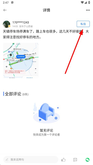 2、在動態(tài)詳情頁面點擊私信按鈕,進入聊天頁面。