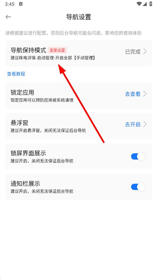3、在導(dǎo)航設(shè)置頁面,點擊導(dǎo)航保持模式選項,按照提示關(guān)閉導(dǎo)航保持模式即可。