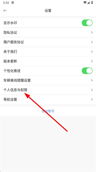 2、在設(shè)置頁面中,選擇個人信息與權(quán)限選項,進入對應(yīng)的權(quán)限管理頁面。