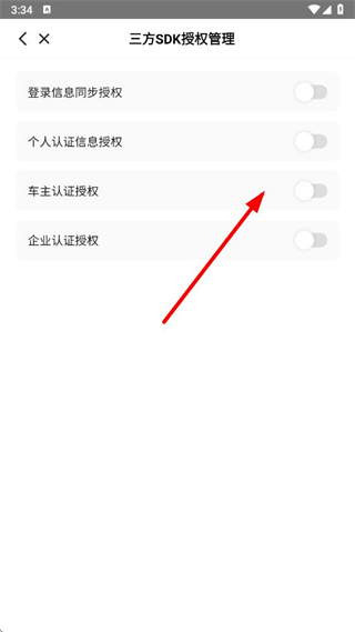 4、在三方SDK授權(quán)管理頁面,找到對應(yīng)權(quán)限,點擊右側(cè)開關(guān)按鈕,即可開啟或關(guān)閉該權(quán)限的授權(quán)狀態(tài)。