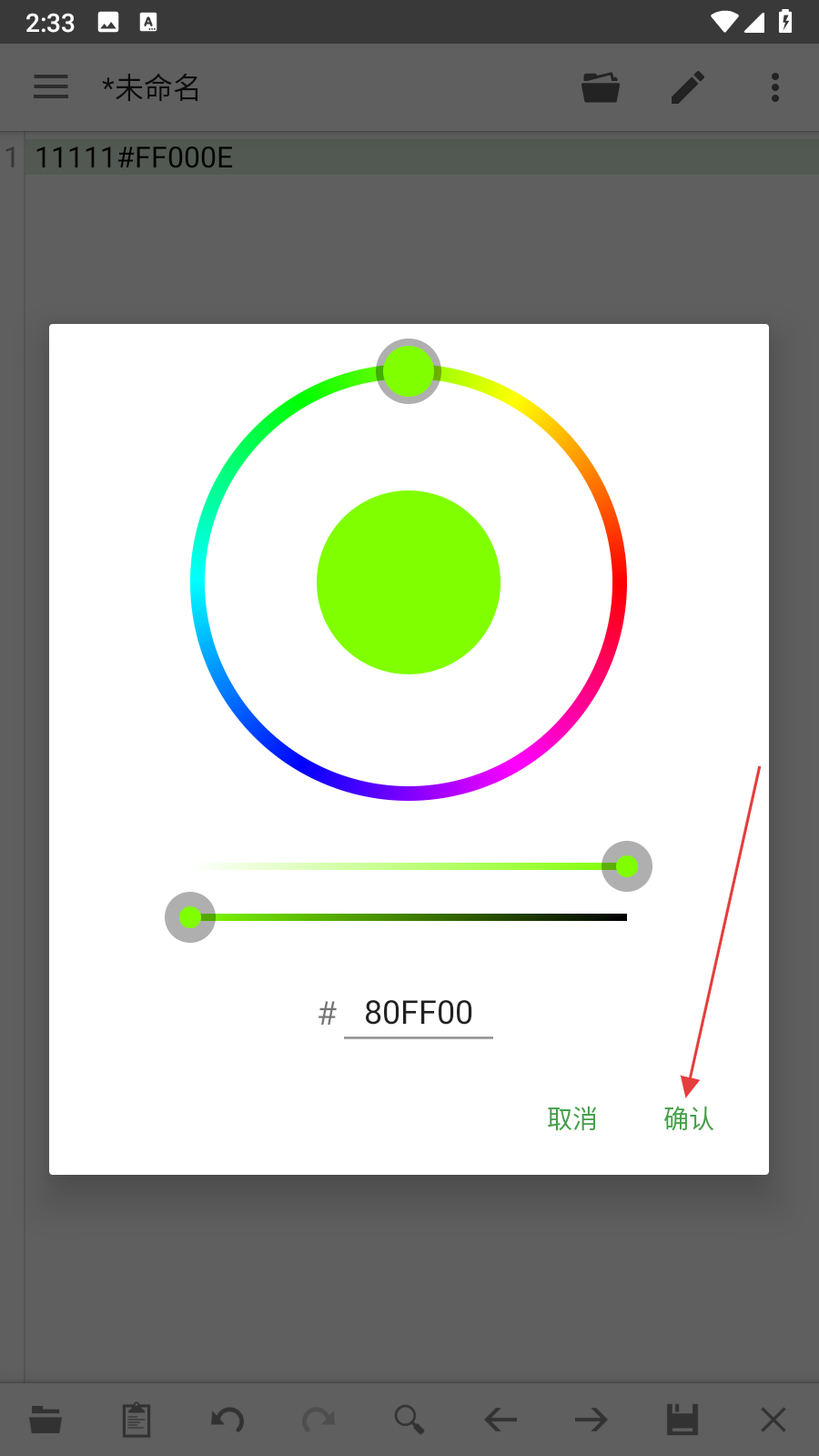 3、通過拖動(dòng)色環(huán)上的選擇點(diǎn)、調(diào)整滑塊或直接輸入顏色代碼選取目標(biāo)顏色,點(diǎn)擊界面右下角確認(rèn)按鈕。
