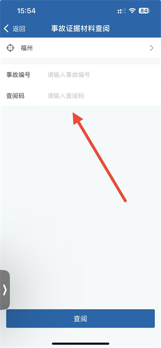 4、在事故證據(jù)材料查閱界面,選擇城市、輸入事故編號(hào)與查閱碼,點(diǎn)擊查閱按鈕即可查看對(duì)應(yīng)的事故證據(jù)材料。