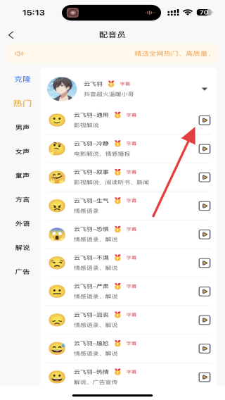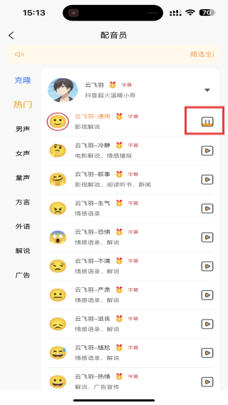發(fā)音人情緒可選,可選擇難過、開心、憤怒、恐懼等10多種情緒下的發(fā)音
